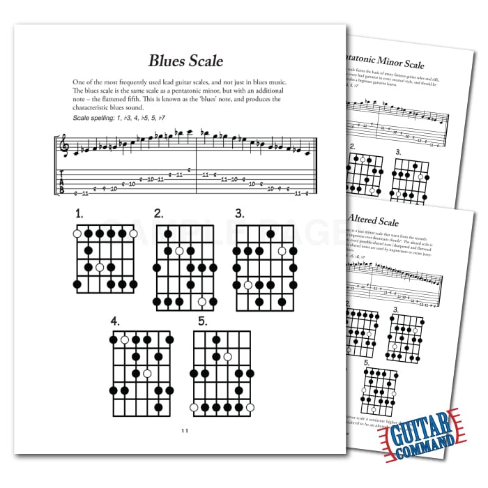 Each scale in the book is presented in diagram form, showing you how to play the scale in multiple positions. Scales are also shown in 2 octaves in C with notation and tab.